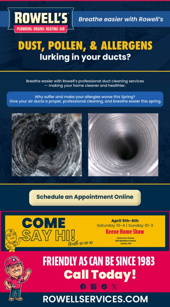 "Friendly As Can Be Since 1983!" When you need help with your plumbing, drains, heating, cooling or electrical in Allenstown, you can always rely on Rowell's Services! Call us now or book online!
