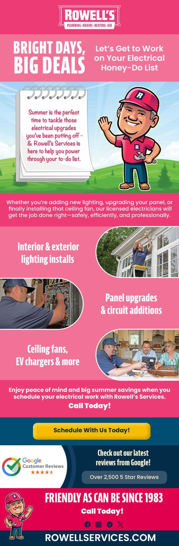 Summer is the perfect time to tackle those electrical upgrades you've been putting off - & Rowell's Services is here to help you power through your to-do list.